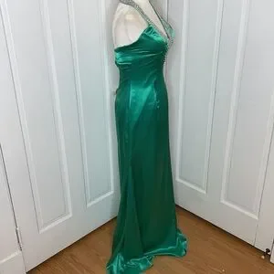 X•Press Stunning Green V Neck Halter Dress with Beaded Sequin Straps.