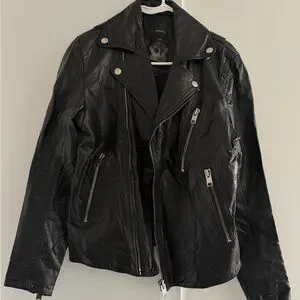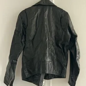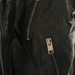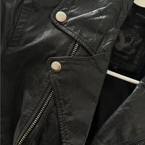 Diesel jacket crafted from black leather. Features sleek silver accents. Ideal for a modern look.