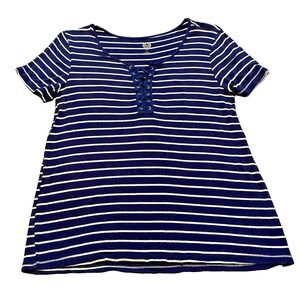 Sonoma Women's Relaxed T-Shirt Medium Blue White Striped Lightweight