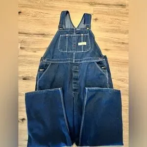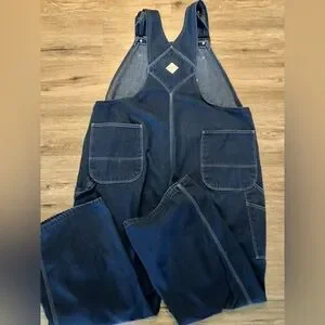VINTAGE 70s BIG MAC Square Bak Blue Denim Work Overalls. Size 44 x 30.
