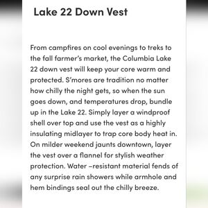 Columbia Lake 22 650 down teal puffer vest, women's XS. Excellent used condition.