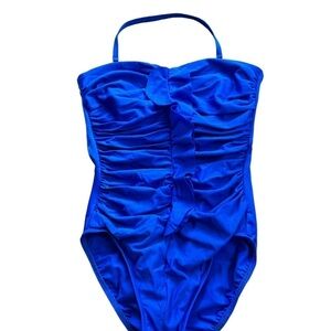 Miraclesuit Blue Camilla Shapewear One Piece Swimsuit Ruched Ruffle Front Size 8