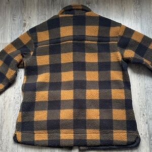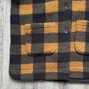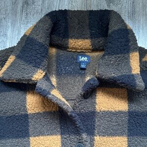 Lee Womens Button Front Sherpa Fleece Jacket Black Orange Plaid Size L