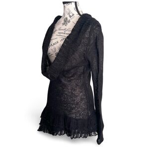 Sandwich Black Mohair Blend Cowl Neck Ruffle Hem Sweater Goth Y2K Grunge