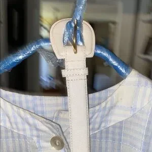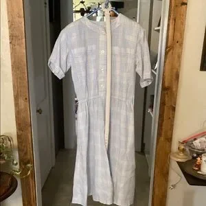 Light Blue Plaid Button-Up Dress with belt handmade vintage belt grandma