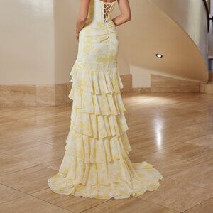 New Yellow Sleeveless Special Occasion Chiffon Dress w/ Floral Print NX T1863