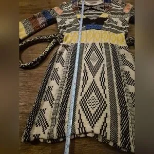 FREE PEOPLE XS Multicolor Patchwork Long Bell Sleeve Sweater Dress