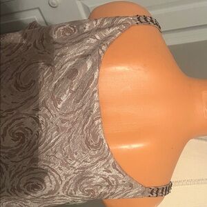 Signature by Robbie bee featuring a neutral-toned jacquard rose pattern with metallic details-