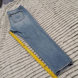 Medium wash White house black market jeans w/navy faux leather trim size 8. Last photo just for fit.