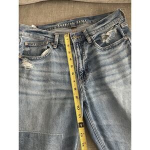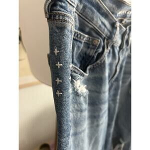 American Eagle 90’ Straight Boho Grunge Patches Distressed Jeans Size 6. Condition is Pre-owned - Excellent. Shipped with USPS Ground Advantage.