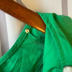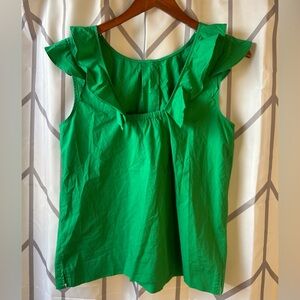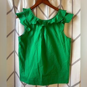 Chic sleeveless blouse with ruffle detail. Bright green color. Ideal for casual or dressy looks.
