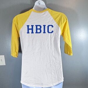 HBIC Graphic Raglan Tee Yellow White Baseball Shirt 3/4 Sleeve New Large