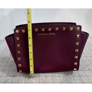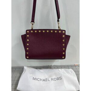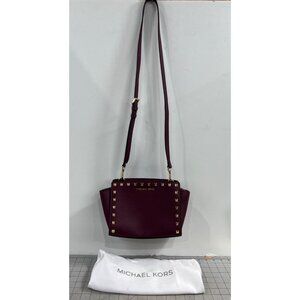 Michael Kors Selma Studded Saffiano Leather Messenger Crossbody Bag Merlot Plum
