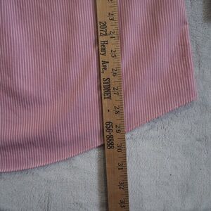 Classic Brooks Brothers shirt. Pink with white stripes. Button-down collar. Perfect for formal or casual wear.