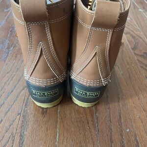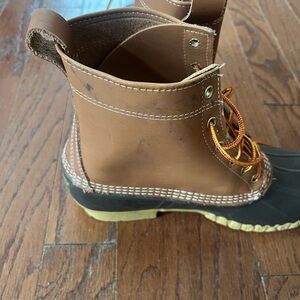 Men’s L.L. Bean Classic Duck Boots. Size 10. My husband wore them literally once to walk around the block - they just weren’t his style. Photo of the boot sole shows almost zero wear on them. There is very minor scuffing on the leather tongue from the shoe laces (shown in photo). Unfortunately, we did also somehow get some black ink smeared on the inner side of the left pair. I included a photo of that as well. Honestly no idea how that happened.