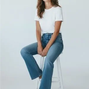 Stylish boot cut jeans by Madewell. Light blue wash. Perfect for casual wear.