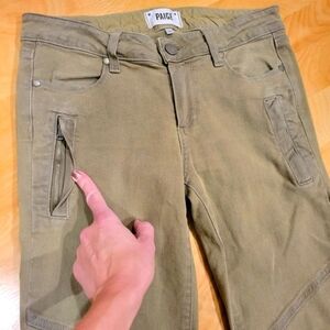 PAIGE Denim Marley Skinny Moto Jeans Fatigue Green Size 27