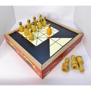 Handmade Peruvian Wood Game Set – 3-in-1: Solitaire, Wolf & Sheep, Ludo Game