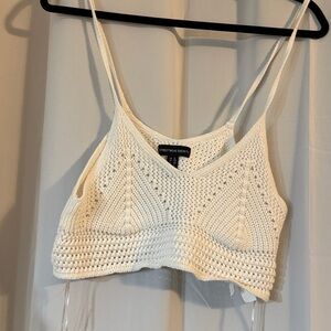 Streetwear Society White Crochet Crop Top XL Boho Pointelle Festival Knit