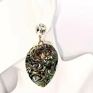 Abalone Colored Gold-Tone Pear Dangle Earrings
