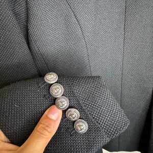 Make a statement the moment you walk into the room with this timeless black double-breasted blazer. Designed with sharp tailoring and bold metallic buttons, this piece delivers instant structure and authority.