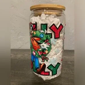 Tags: Disney goofy Christmas holly jolly glass tumbler drinkware handmade handcrafted holiday Christmas wreath