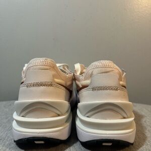 Stylish cream and tan sneakers with a sleek design. Perfect for casual wear.