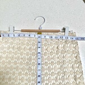 Beautiful Crochet/lace boho skirt w shabby chic resort vacay party vibe this trendy gem comes very gently used w minimal wear size 7/8 fits like a S/M amazing w oversized blouses tanks etc