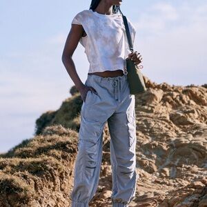 Made for hiking trips and all your favorite outdoor activities, these sporty pants are featured in a low-rise fit and slouchy silhouette with cargo-inspired pockets allover and elasticated hemlines.