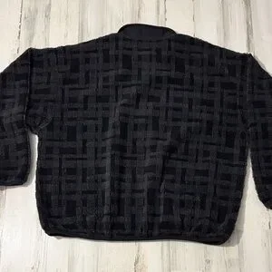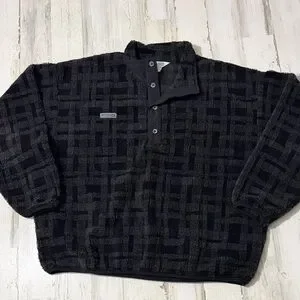 Vintage Columbia Black Geometric Fleece Pullover Made in USA. XL Paper tag