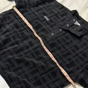 Warm fleece pullover with geometric design. Features a button-up collar for added style.