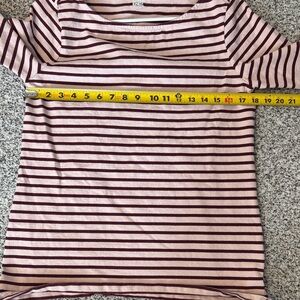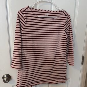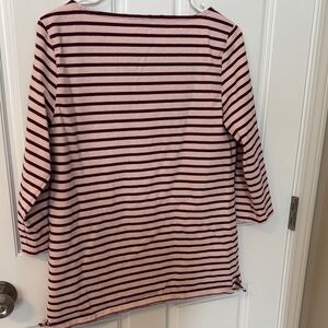 Lands End top with pink and burgundy stripes and 3/4 sleeves. Ideal for everyday style.