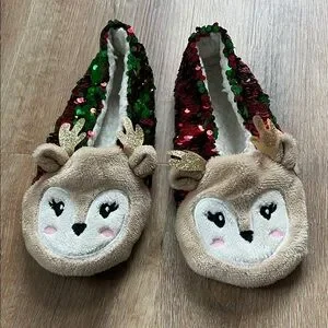 Reindeer Sequin Slippers Size 7