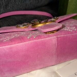 Gucci Pink Velvet Crystals Medium GG Marmont Bag (Limited Edition)