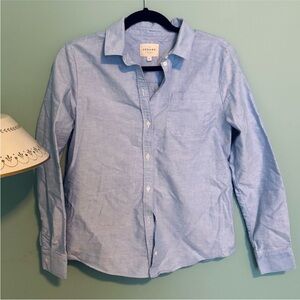 Sezane “Tomboy” light blue organic cotton button down shirt. Long sleeve. Chest pocket. Straight fit. Length from shoulder to hem: 26.8”. Made from 100% organic cotton fabric. Women’s size 4. Only worn a handful of times. In great condition, no flaws. Open to offers!