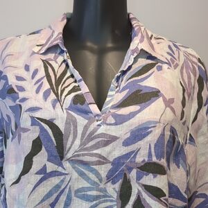 C&C California Linen Tropical Floral Blouse Top