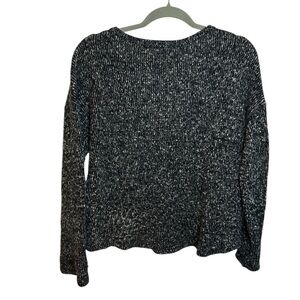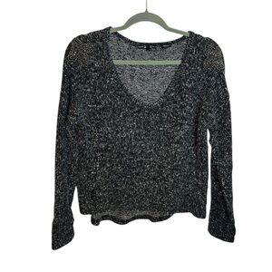 Pre owned excellent condition. Worn a handful of times. Has a couple minor pulls (pictured). Stylish black and white fuzzy knit sweater with a scoop neck design and a y2k classic miss me beaded embellishments on shoulders. Perfect for casual wear. Womens size small.