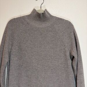 Boden High Neck Knit Sweater Midi Dress Mink Tan Neutral. Mock turtleneck. Long sleeves. 35% wool blend, 5% alpaca.