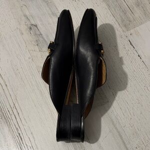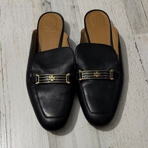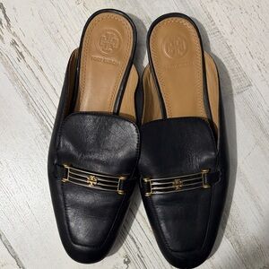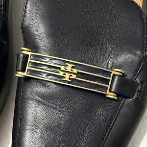 Tory Burch Amelia Black Leather Women's Loafers with Gold Accents Size 7.5 Chic black leather loafers. Features gold detailing. Perfect for stylish outings. There are tiny scuffs on one shoe/ could be buffed out with wax, I just don’t have any