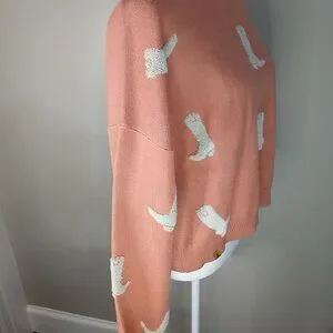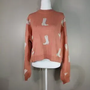 SIMPLY SOUTHERN SALMON COLOR CROPPED SWEATER WITH COWBOY BOOTS WOMENS XXL NWOT