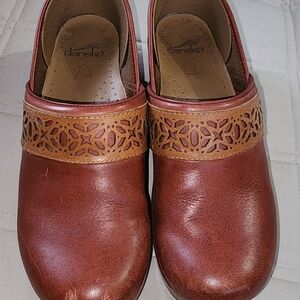 Step into comfort with Dansko's stylish brown leather clogs. Perfect for everyday wear, these shoes offer both elegance and support.
