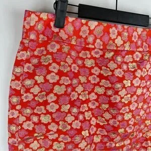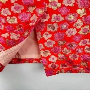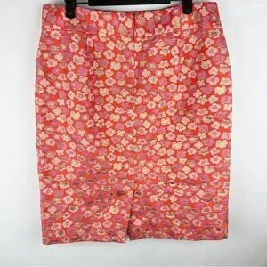 J. Crew Floral Pink and Orange Metallic Pencil Skirt | US Size 10