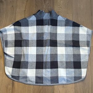 Stylish plaid poncho. Features a zip front. Perfect for layering.
