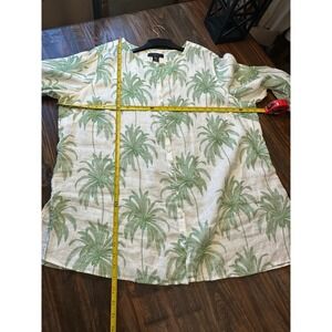 Tahari 100% Linen Palm Tree Print Button Down Blouse Green White Roll Tab 2X