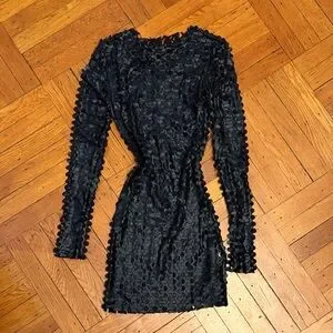 Elevate your wardrobe with this chic black textured dress. Perfect for any occasion, this long sleeve design offers a sophisticated look. Pair it with a catsuit or your favorite accessories for a complete ensemble.