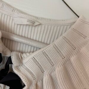 Zara White Ruffled Top with Black Bow - size M 💜