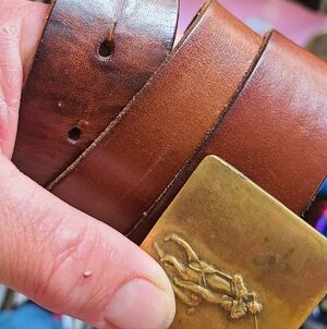 How to hold as you're wearing, it?Measures about 32 in that measurement is in the photos.Overall link is thirty four , but it fits about thirty to thirty two waist