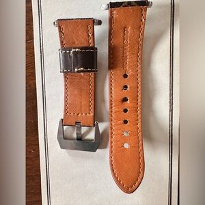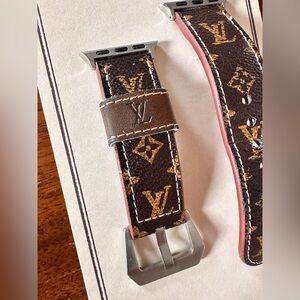Elevate your Apple Watch with this designer-inspired repurposed band. Purchased as a repurposed bag into a watch band. Crafted from thick, sturdy material, this band gives you that luxe, branded look without the boutique price. It has been gently loved and remains in good overall condition with plenty of life left.