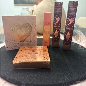 Charlotte Tilbury Eyeshadow Palette, Highlighters, Peach Lip, and Bronze Glow