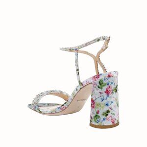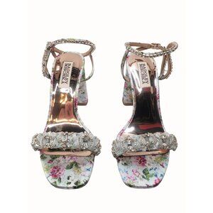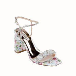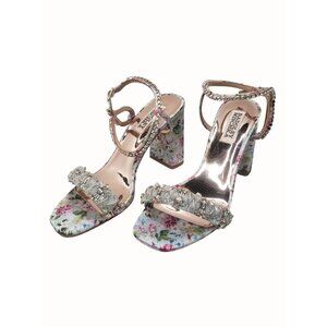 Badgley Mischka Tanisha Blue Floral Sandal Womens 5.5 Block Heel Beaded NEW